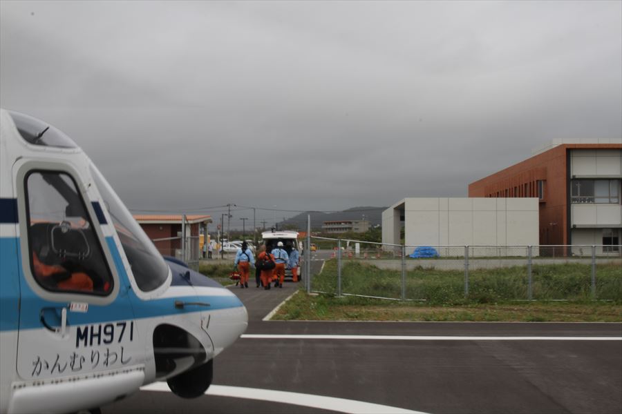 多良間島からの急患搬送 令和3年3月27日午前8時45分ころ、沖縄県防災危機管理課より急患輸送要請がありました。石垣航空基地所属ヘリコプターで多良間空港から真栄里暫定ヘリポートへの搬送を実施し、午前10時30分に石垣市消防本部の救急車に引き継いでいます。 患者:53歳 男性 写真:真栄里暫定ヘリポートにて患者引き継ぎ時の様子