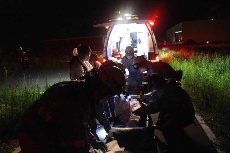 多良間島からの急患搬送 令和3年5月24日午後11時36分ころ、沖縄県防災危機管理課より急患輸送要請がありました。石垣航空基地所属ヘリコプターで多良間空港から真栄里暫定ヘリポートへの搬送を実施し、午前1時34分に石垣市消防本部の救急車に引き継いでいます。 患者:50歳 男性 写真:真栄里暫定ヘリポートにて患者引き継ぎ時の様子