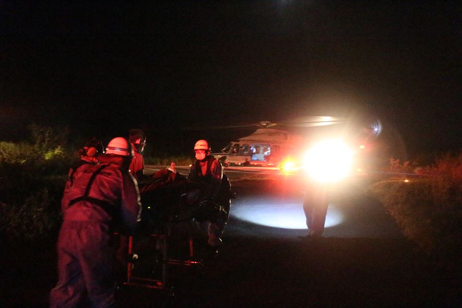 西表西部からの急患搬送 令和3年9月13日午後8時09分ころ、沖縄県防災危機管理課より急患輸送要請がありました。石垣航空基地所属ヘリコプターで西表西部ヘリポートから真栄里暫定ヘリポートへの搬送を実施し、午後9時38分に石垣市消防本部の救急車に引き継いでいます。 患者:61歳 男性 写真:西表西部ヘリポートにて患者引き受け時の様子
