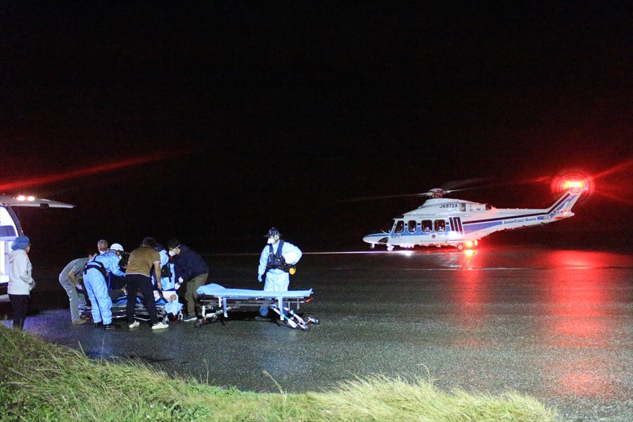 多良間島からの急患搬送 令和4年1月18日午後8時32分ころ、沖縄県防災危機管理課より急患輸送要請がありました。石垣航空基地所属ヘリコプターで多良間空港から真栄里暫定ヘリポートへの搬送を実施し、午後10時22分に石垣市消防本部の救急車に引き継いでいます。 患者:77歳 男性 写真:多良間空港にて患者引き受け時の様子