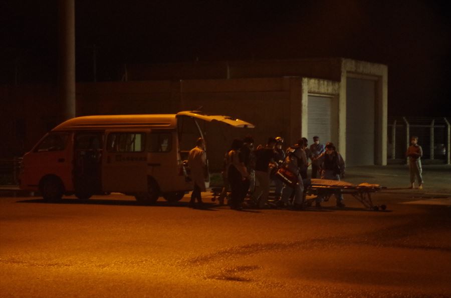 患者:65歳 男性 写真:与那国空港にて患者引き受け時の様子
