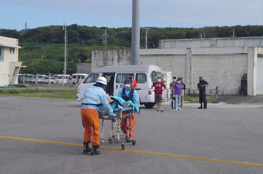 患者:91歳 男性 写真:与那国空港にて患者引き受け時の様子