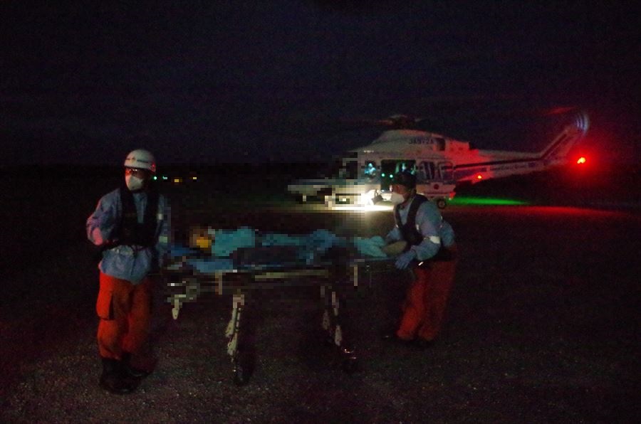 令和5年2月26日午後6時16分ころ、沖縄県防災危機管理課より急患輸送要請がありました。石垣航空基地所属ヘリコプターで波照間空港から真栄里暫定ヘリポートへの搬送を実施し、午後7時41分に石垣市消防本部の救急車に引き継いでいます。