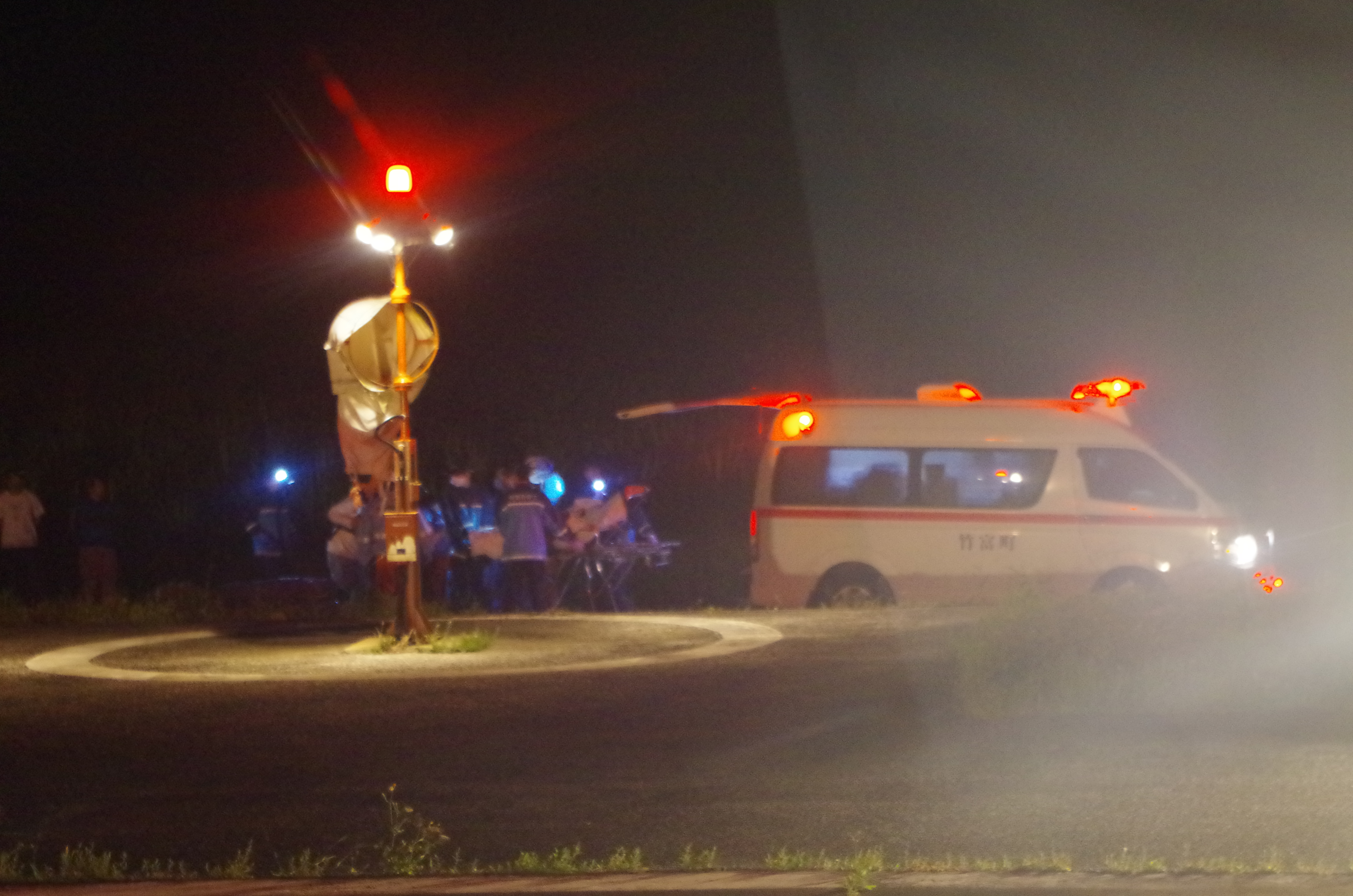 西表島東部からの急患搬送 令和5年5月1日午後8時07分ころ、沖縄県防災危機管理課より急患輸送要請がありました。石垣航空基地所属ヘリコプターで西表島東部ヘリポートから真栄里暫定ヘリポートへの搬送を実施し、午後10時27分に石垣市消防本部の救急車に引き継いでいます。 患者:34歳 女性 写真:西表島東部ヘリポートにて患者引き受け時の様子