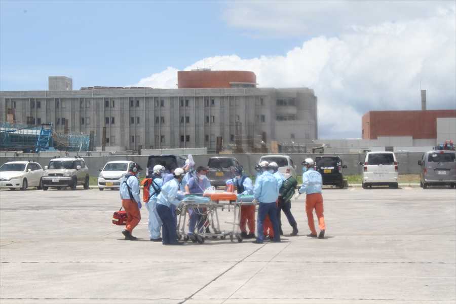 西表西部からの急患輸送 令和2年8月9日午前10時59分頃、沖縄県八重山事務所より急患輸送要請がありました。石垣航空基地所属ヘリコプターで西表西部ヘリポートから石垣市消防本部車庫前への搬送を実施し、午後12時12分に石垣市消防本部の救急車に引き継いでいます。なお、今回は患者の容体に緊急を要したため、搬送時間短縮のために、石垣市消防本部の車庫前に着陸しました。 患者:2歳 男性 写真:石垣市消防本部の車庫前にて患者収容時の様子