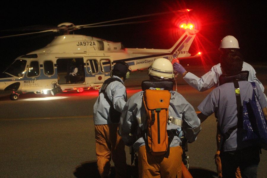 与那国島からの急患輸送 令和2年11月16日19時47分頃、沖縄県防災危機管理課より急患輸送要請がありました。石垣航空基地所属ヘリコプターで与那国空港から真栄里暫定ヘリポートへの搬送を実施し、21時40分に石垣市消防本部の救急車に引き継いでいます。 患者:71歳 男性 写真:与那国空港にて患者引き受け時の様子