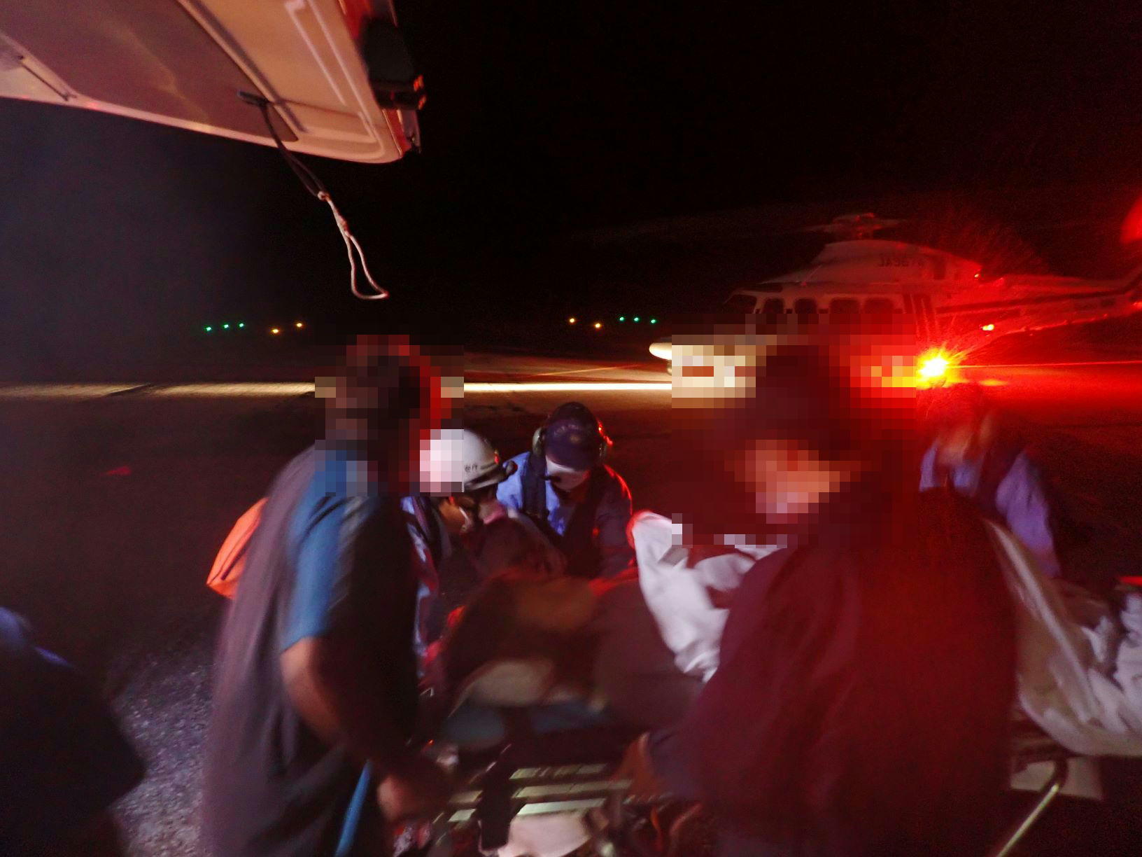 波照間空港からの緊急搬送 令和8年3月15日午後9時27分、沖縄県消防防災対策課から当基地に対して急患輸送要請がありました。石垣航空基地所属ヘリコプターで波照間空港から真栄里暫定ヘリポートへの搬送を実施し、3月15日午後11時7分に石垣市消防本部の救急車に引き継いでいます。 患者63歳 女性 写真:波照間空港からの患者引き受けの様子