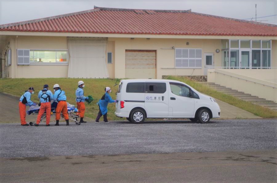 波照間島からの急患搬送 令和5年6月1日午後6時18分ころ、沖縄県防災危機管理課より急患輸送要請がありました。石垣航空基地所属ヘリコプターで波照間空港から真栄里暫定ヘリポートへの搬送を実施し、午後8時01分に石垣市消防本部の救急車に引き継いでいます。 患者79歳 男性 写真:波照間空港での患者引き受けの様子