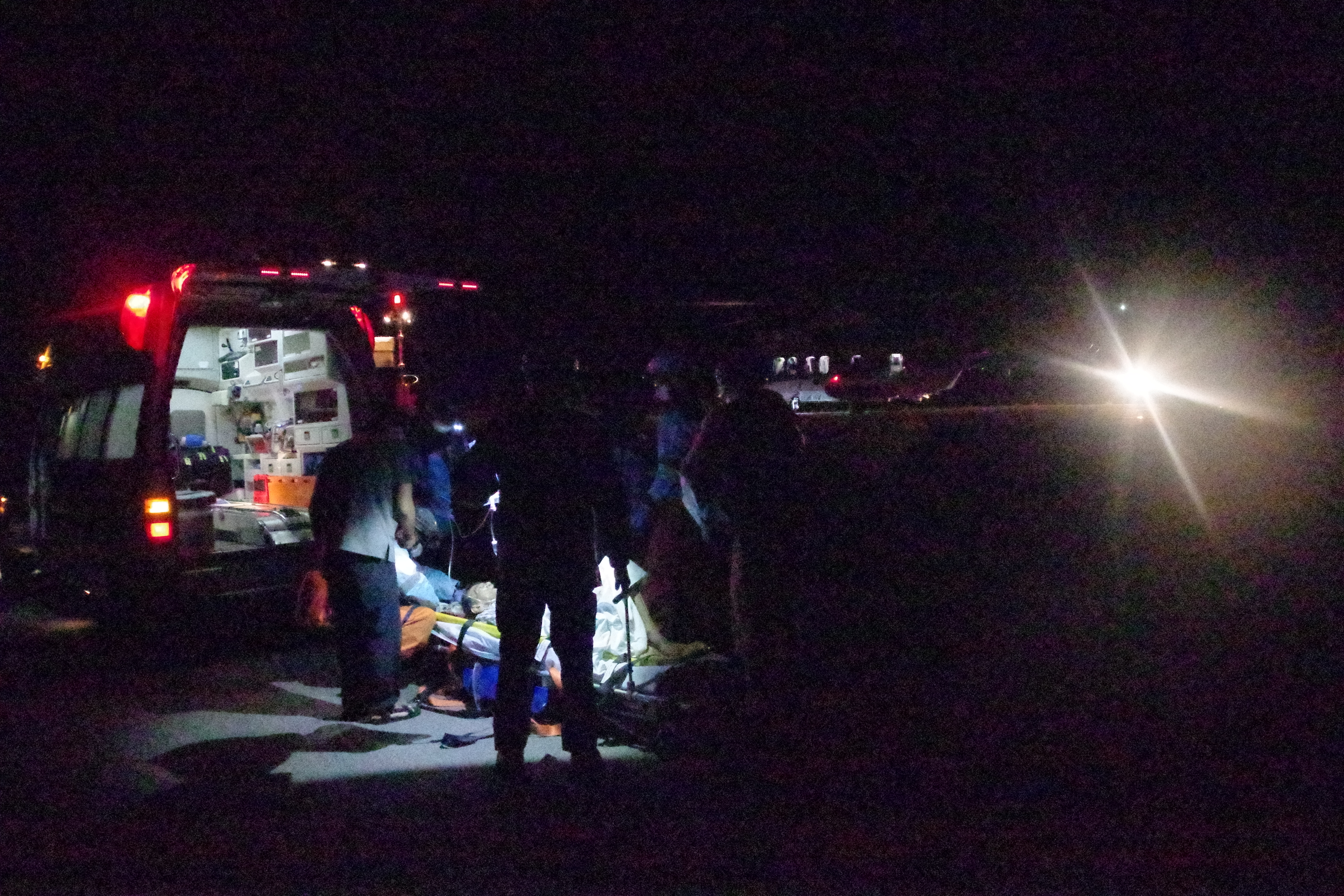 西表島からの緊急搬送 令和6年11月25日午後8時35分、沖縄県防災危機管理課から当基地に対して急患輸送要請がありました。石垣航空基地所属ヘリコプターで西表島東部ヘリポートから真栄里暫定ヘリポートへの搬送を実施し、11月25日午後10時35分に石垣市消防本部の救急車に引き継いでいます。 患者72歳 男性 写真:西表島からの患者引き受けの様子