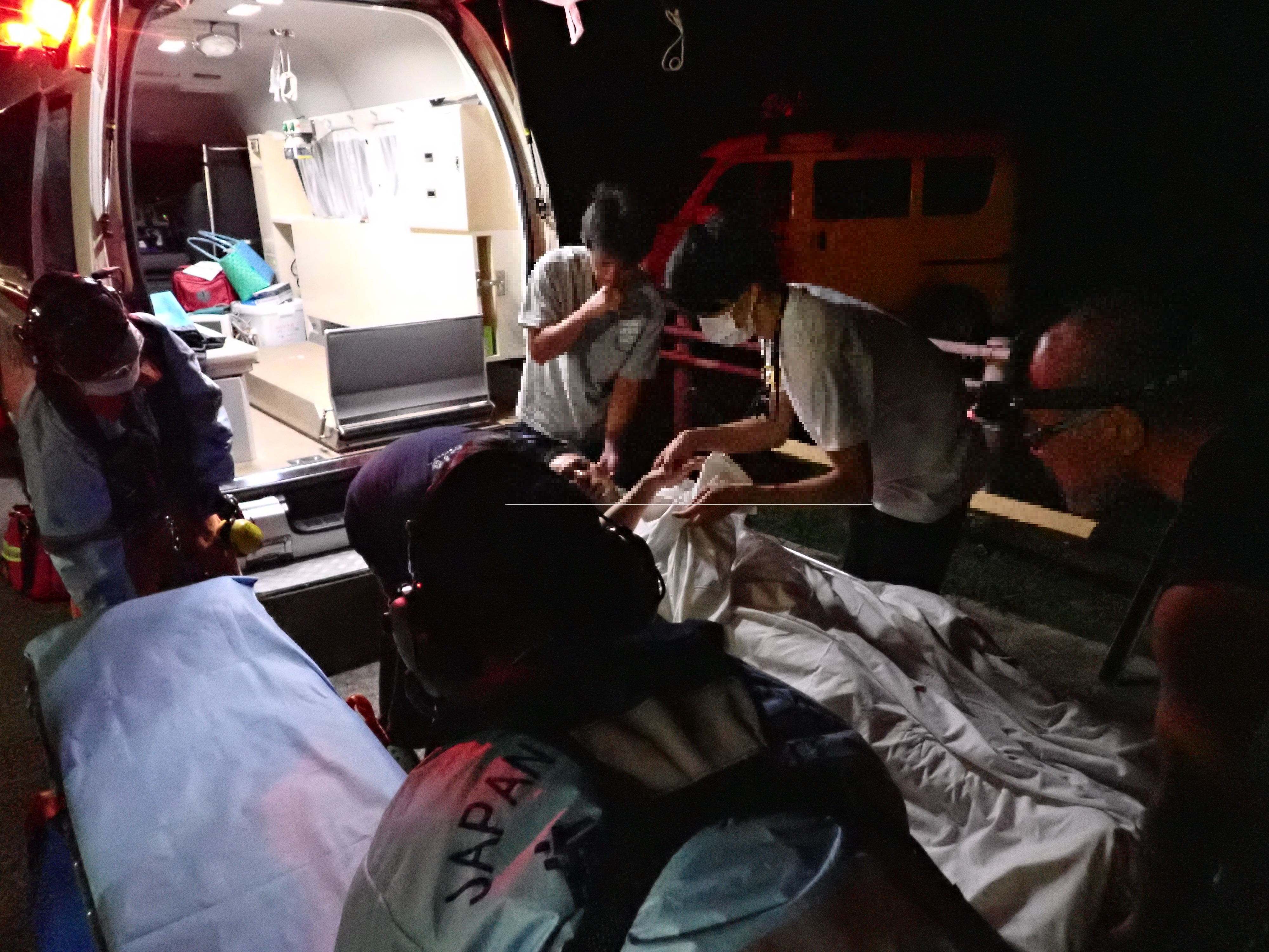 波照間島からの緊急搬送 令和6年5月7日午後9時15分、沖縄県防災危機管理課から当基地に対して急患輸送要請がありました。石垣航空基地所属ヘリコプターで波照間空港から真栄里暫定ヘリポートへの搬送を実施し、5月7日午後10時49分に石垣市消防本部の救急車に引き継いでいます。 患者61歳 男性 写真:波照間空港からの患者引き受けの様子