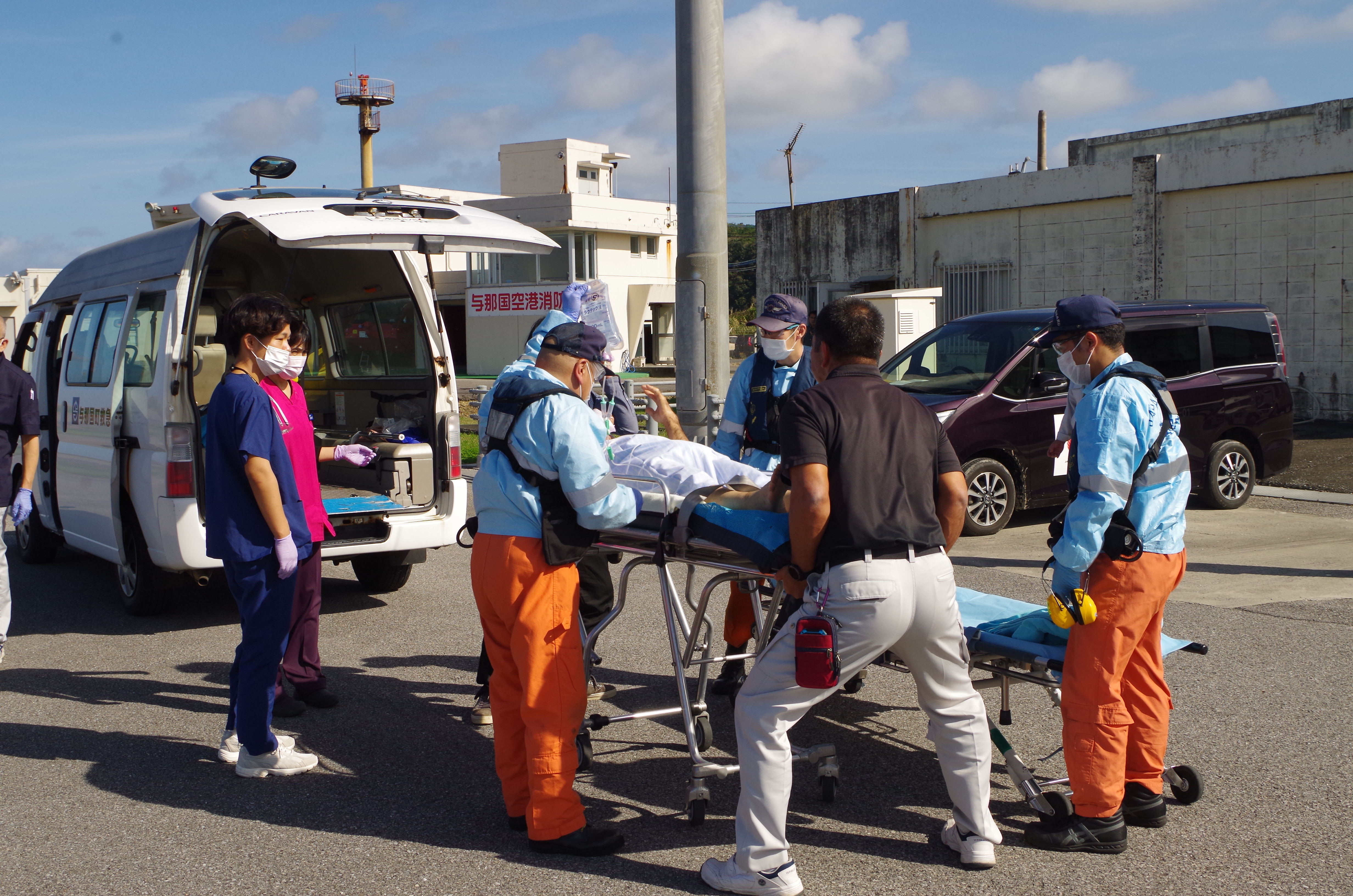 多良間島からの急患搬送 令和6年2月1日午後1時54分、八重山事務所から当基地に対して急患輸送要請がありました。石垣航空基地所属ヘリコプターで与那国空港から真栄里暫定ヘリポートへの搬送を実施し、2月1日午後3時46分に石垣市消防本部の救急車に引き継いでいます。 患者69歳 男性 写真:与那国島にて患者引き受けの様子