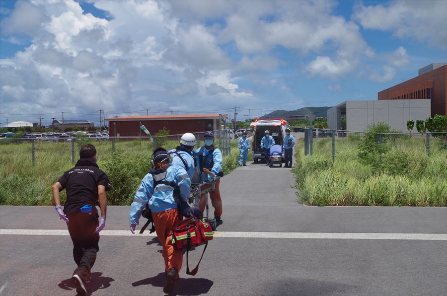 多良間島からの急患搬送 令和5年7月19日午前11時14分頃、宮古事務所より急患輸送要請がありました。石垣航空基地所属ヘリコプターで多良間空港から真栄里暫定ヘリポートへの搬送を実施し、午後0時21分に石垣市消防本部の救急車に引き継いでいます。 患者:65歳 男性 写真:石垣市消防本部に患者引き渡しの様子
