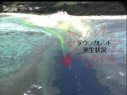 海底に向かって流れる潮流のことを言います。主にリーフ際が急に深くなった落ち込みに発生しやすく、この流れにより海底に引き込まれるため、当然注意が必要です。 |