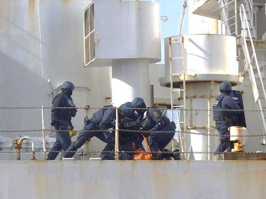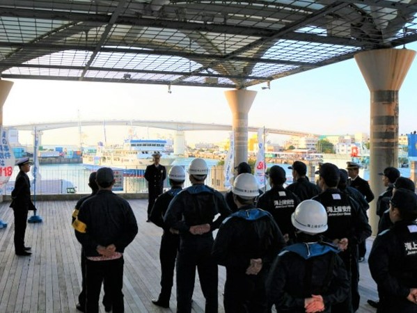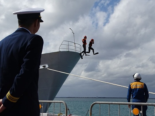 1月6日、那覇海上保安部では、今年最初の潜水訓練を行いました。巡視船くだかの潜水士は、飛込み、ドルフィン、登はん、錘運搬、要救助者搬送訓練で心身を鍛練するとともに、海難救助活動の対応能力維持向上に努めました。