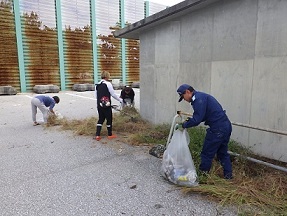 三重城船溜まり(那覇市内)周辺の清掃活動を利用者の方々と行いました。清掃活動は那覇港施設指定管理者の呼びかけで年に一度この時期に実施されており、施設利用者が多数参加されることから、今回は船溜まりに隣接する那覇水路の航行管制信号(*道路の信号機のようなもの)の遵守についても周知・啓発を行わせていただきました。引き続きルールを守って安全運航をお願いします。