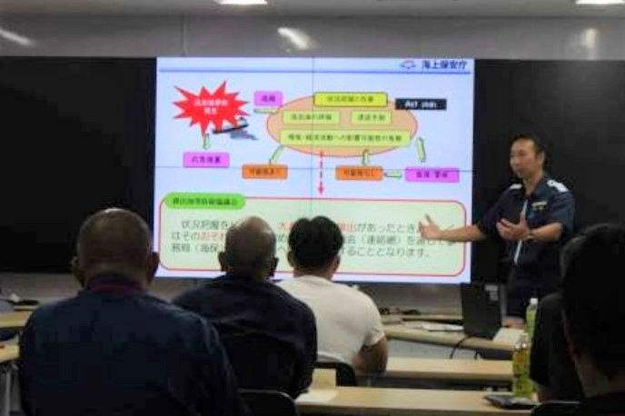 海上安全指導員の活動の推進及び相互の情報交換を図るため、12月22日、連絡会議を保安部において開催しました。当日は15名ほどの指導員が参加され、保安部から船舶海難、人身事故の発生状況や指導員の活動実績を報告しました。各指導員からは活動状況や地域が抱える課題等を発表・共有いただき、海の事故ゼロを目指し一層の連携協力を確認しました。海上安全指導員とはこちらを参照ください。