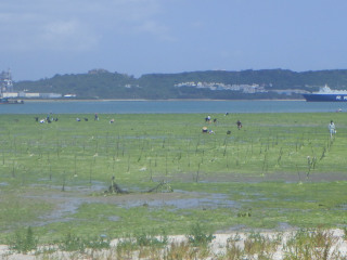 ![]() ハマウリの日、泡瀬干潟で潮干狩りを楽しむ人たち (令和6年4月4日撮影) |