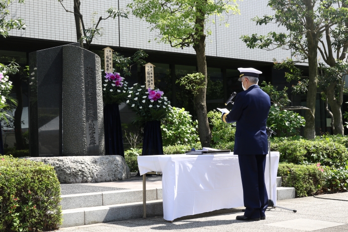 追悼の辞を読み上げる石井昌平海上保安庁長官