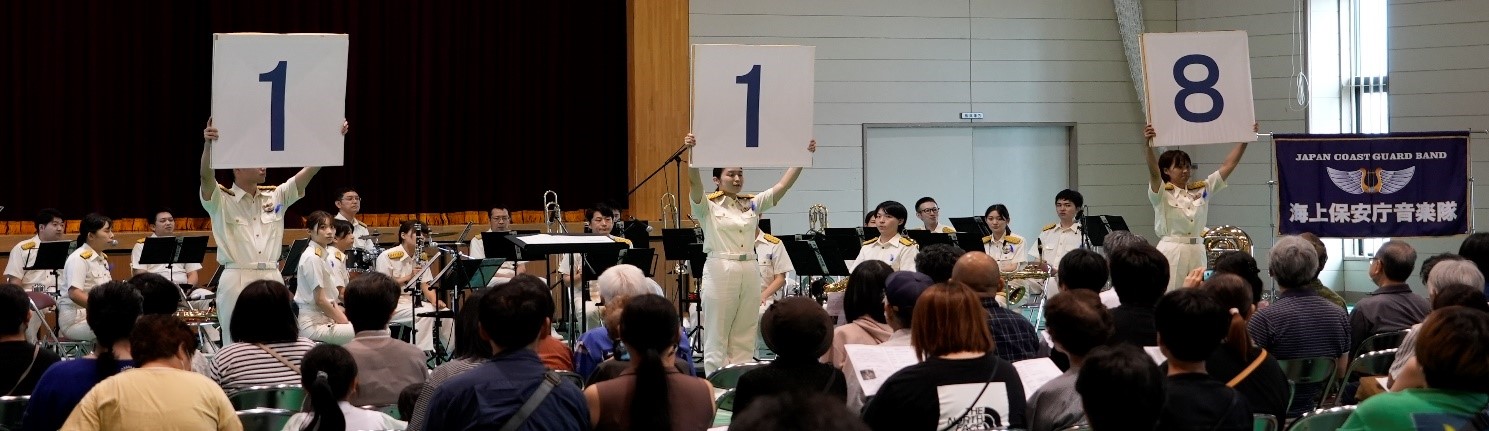 また、演奏時の曲間では、秋田海上保安部の職員による広報を実施し、118番の周知や海での救命胴衣の着用を呼びかけました。