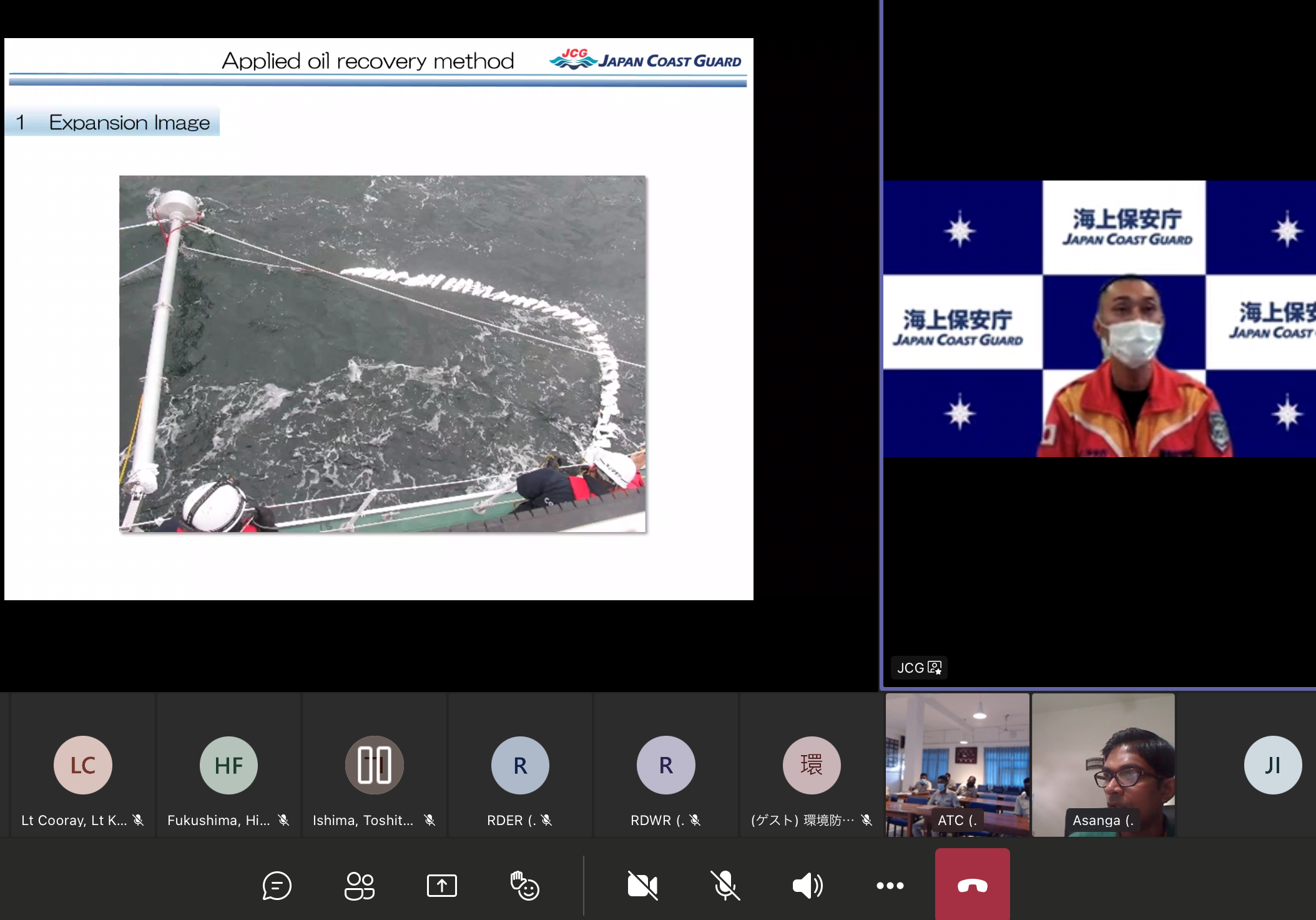 Mobile Cooperation Team (MCT) and National Strike Team (NST) of Japan Coast Guard (JCG) had an online training on "Response to crude oil spill incidents" with Sri Lanka Coast Guard (SLCG) officials under the support of Japan International Cooperation Agency (JICA) on October 7th and 8th, 2021.