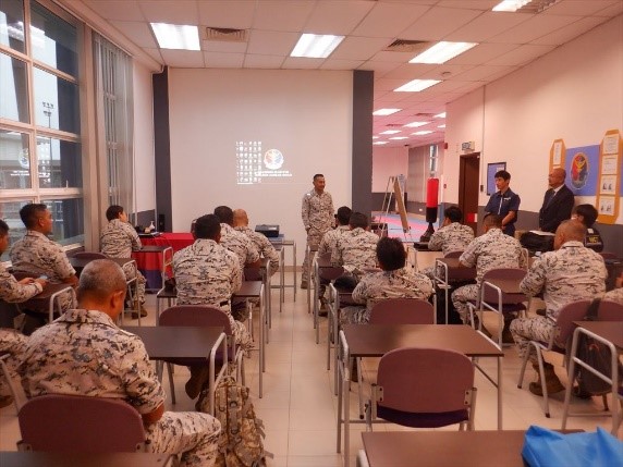 The MCT provided brush-up training on arresting techniques for 16 MMEA personnel, including six past instructor course participants trained in Japan.