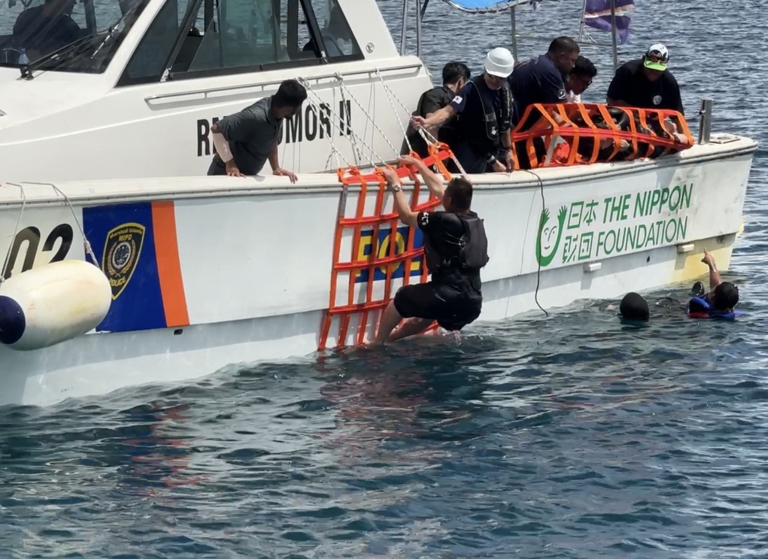 1. During our dispatch, MCT conducted drifters rescue exercise at sea for RMI Sea patrol crews using the rescue equipment (fiber light cradle), which is often used by JCG, in collaboration with the Japan Maritime Self-Defense Force (JMSDF).