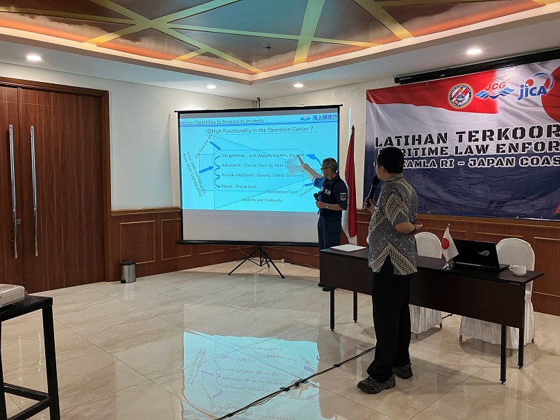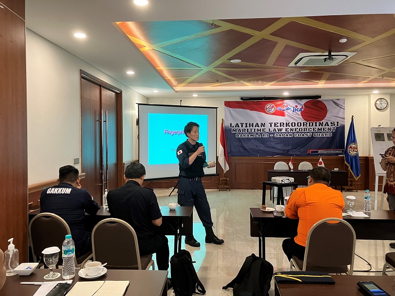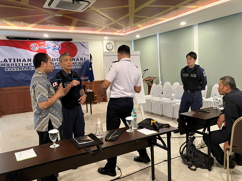 The Japan Coast Guard (JCG) dispatched three members of its Mobile Cooperation Team (MCT), a special team that provides coast guard agencies in other countries with capacity building support on maritime safety and security, to the Indonesia Coast Guard (BAKAMLA) from 9th to 11th July 2024. This project is under the framework of the Japan International Cooperation Agency (JICA). We provided technical support to the Indonesia Coast Guard (BAKAMLA) and others to improve their operational and criminal investigation capabilities.