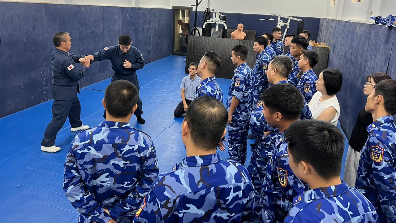 To support the improvement of the maritime law enforcement capabilities of the Vietnam Coast Guard (VCG), the MCT and others gave a lecture about on-board inspection, arresting techniques and conducted on-board inspection exercise for illegal drug cases and arresting techniques training required for arresting criminals.