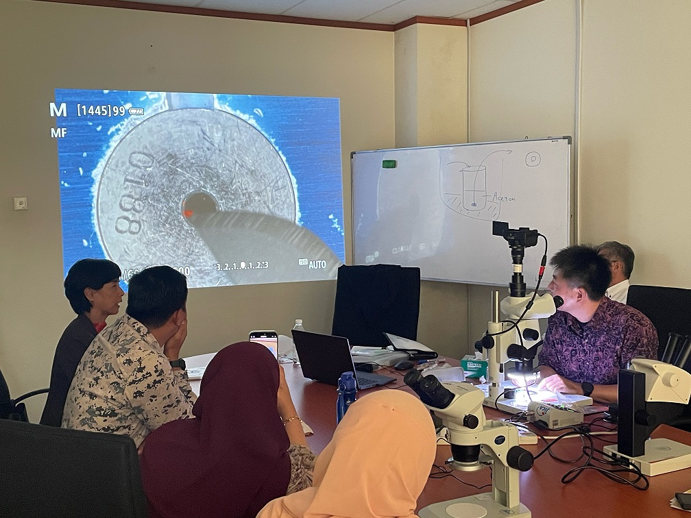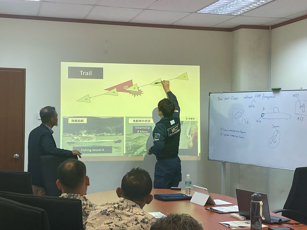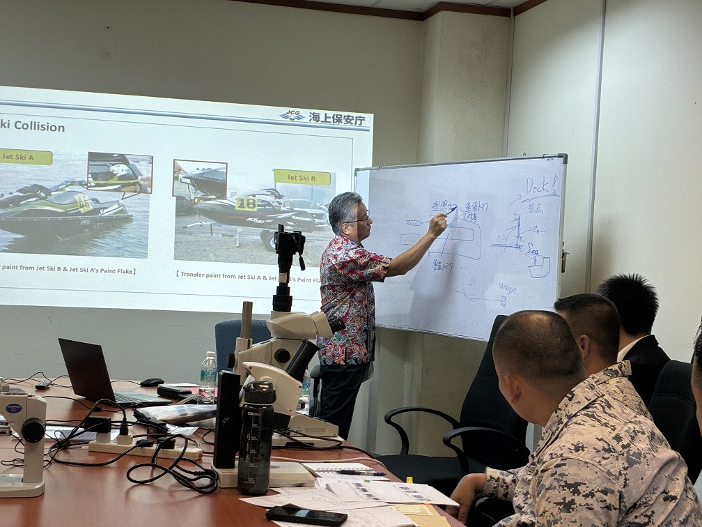 Mobile Cooperation Team (MCT) and the Japan Coast Guard Research Institute provided capacity-building support to MMEA personnel and others regarding "vessel paint flake analysis and identification" necessary for maritime law enforcement activities. During this deployment, they investigated procedures for forensic analysis to be accepted as criminal evidence within Malaysia, the current status of analytical equipment required for vessel paint flake analysis, and its potential applications in forensic science.