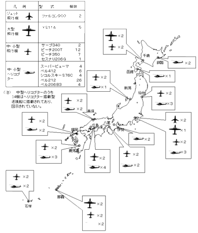 12年度には、前年度からの継続分として中型飛行機3機及び中型ヘリコプター1機を整備するとともに、新規分として中型ヘリコプター1機を整備することとしている。