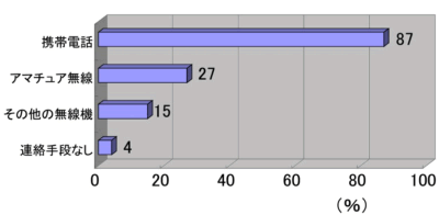 また、連絡手段としては、愛好者のうち87%(水上オートバイを除く。)が携帯電話を所持していると答えたが、何ら連絡手段を持っていない者は4%であった(第2−3−3図参照)。