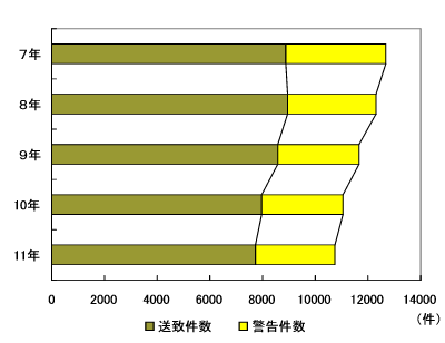 | (注) 処理件数とは、送致件数及び警告件数の合計をいう。 |