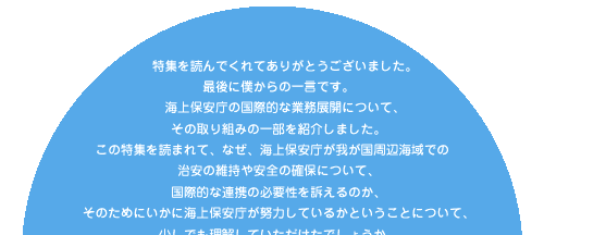 今後も、周辺諸国の海難救助機関との合同訓練などを継続的に実施し、各国の捜索救助能力の向上を図ることとしています。さらに、我が国と二国間SAR協定を締結していない国と同協定の締結を図ることにより、捜索救助能力の向上を図り、一人でも多くの人の救助が可能となる体制の実現を目指していくこととしています。