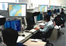 同システムは、AIS陸上局7局を東京湾及びその周辺海域に配置することにより、従来のレーダー監視海域に比べはるかに広い海域において、AIS搭載船舶の動静把握を可能にするとともに、AIS搭載船舶に対し、安全航行に必要な気象情報や工事情報などを文字(英語のみ)により提供することも可能となりました。さらに、同システムを運用することにより、 従来、船舶から海上交通センターにVHF無線を使用して行っていた位置通報*2を省略することが可能となり、AIS搭載船舶の操船者の負担軽減や通信のふくそう防止が図られるとともに監視業務の充実・強化にもつながっています。