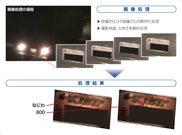 映像解析技術で事件を解明!海上保安試験研究センター 海上保安試験研究センター(立川市)では、当庁業務で使用する資機材等の試験研究のほか、全国の部署から送られてくる海上犯罪に係わる証拠物等の分析鑑定業務を行なっています。 鑑定依頼は、海洋に不法排出された油類、水銀等の有害物質を含む工場排水、事故現場に残された船舶塗料、覚せい剤等の違法薬物、航海計器のデータ解析等様々ですが、中には犯行現場のビデオ映像についての解析依頼もあります。 一昨年、大量の自動二輪車用タイヤが港内に不法投棄されるという事件が発生しましたが、映像解析技術が事件解明に大きく寄与し、容疑者の特定、検挙につながりました。 この解析では、夜間撮影されたビデオ映像に記録された走行車両のナンバーを読み取る必要がありましたが、提供された映像は、光量不足、斜めからの撮影、ピントのズレに加え、ナンバーが画面の一部にしか映っていなかったため、作業は困難を極めました。 まず初めの作業として、映像の鮮明化を行いました。一般的にはコマ画像を重ね合わせて処理しますが、今回は各コマ画像に映ったナンバーの形状、大きさ及び位置が全て異なっていたため、各コマ画像のナンバー部分を切り取り、形状等が同一になるよう加工し、それらを重ね合わせて鮮明化を図りました。その後、ある程度鮮明となった画像に、ナンバープレートで使用される字体の形状を反映させ、ようやくナンバーを読み取ることができたのです。 このように、海上保安試験研究センターでは、各分野の最新技術を駆使して、治安の確保や日本の海を守るため、現場で活躍している海上保安官を科学捜査の分野から支えています。