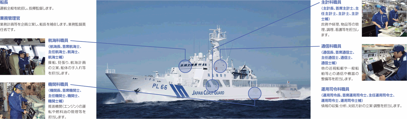海上犯罪の捜査や海難救助に関する業務等を総合的に行います。
