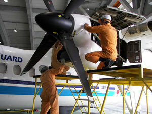 航空機の機体整備や燃料油の管理等を担当します。また、フライトの際には航空機に搭乗もします。