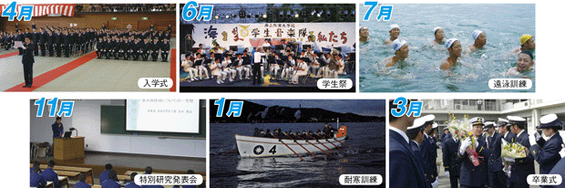 海上保安大学校は、広島県呉市にあり、将来の海上保安庁の幹部となる職員として必要な高度な学術及び技能を教授し、併せて心身の練成を図ることを目的として設置された海上保安庁の教育機関です。教育内容は、一般大学と多くの共通点を持ちながらも、広範にわたる海上保安業務の職責を全うするための資質を培いながら、将来に向かって自分の可能性を伸ばそうとするフロンティア精神を養成するもので、優れた人格とリーダーシップの育成、高い教養と見識の修得、強靱な体力・気力の錬成の3つを教育方針に掲げています。
