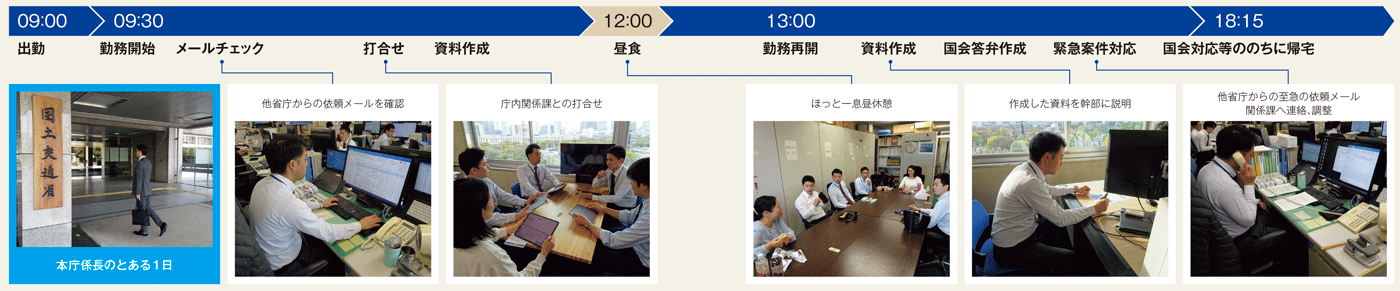 霞が関の職場環境はブラックだと揶揄されることもありますが、昨今、公務員の様々な制度改革が進められており、海上保安庁においても人にやさしい組織づくりが進んでいると感じます。特に、制度面のみならず、子供の急な発熱などに対しても上司をはじめ職場の皆さんが「家庭第一だよ」などと声をかけてくれますので、いつも温かい雰囲気に支えられています。職員一人ひとりの事情は異なると思いますが、多様な働き方が認められることが海保の強みになるものと信じています。