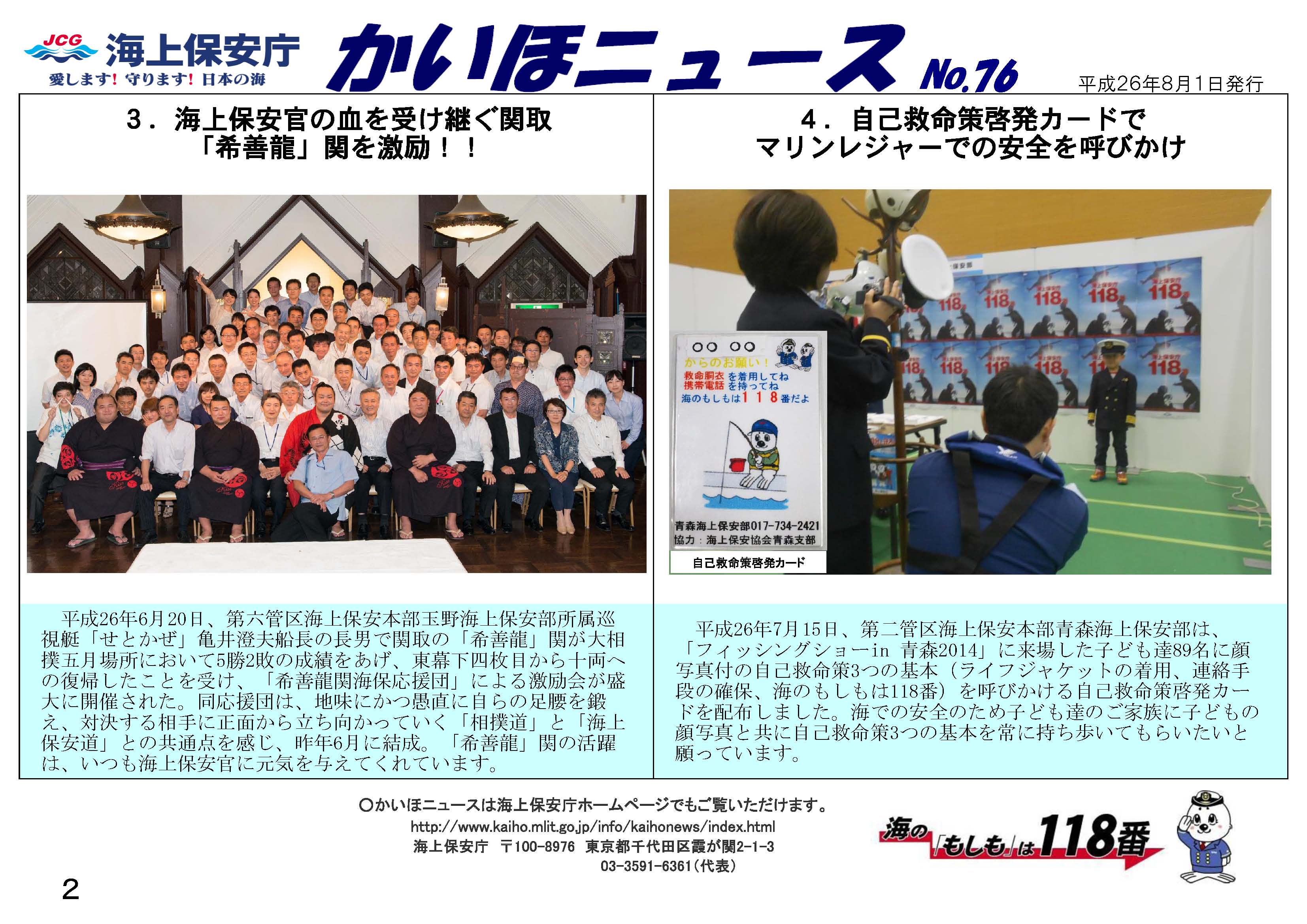このページでは、海上保安庁が扱う事件・事故、各種行事や海外の海上保安機関との交流状況などの情報を写真とともに紹介いたします。