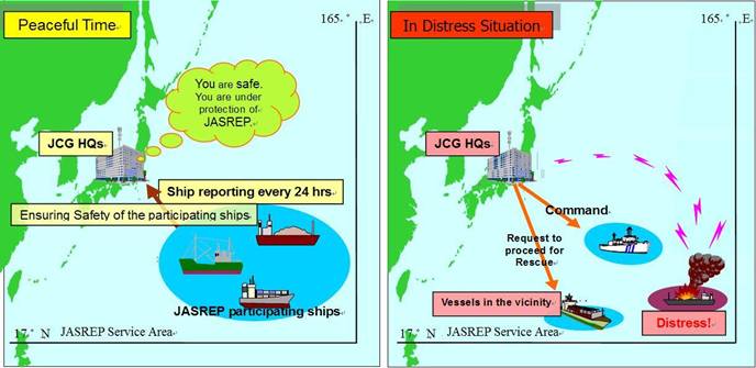 我が国でも、「1979年の海上における捜索及び救助に関する条約」(通称SAR条約)が発効した昭和60年(1985年)から、日本の船位通報制度(ジャスレップ:JASREP)の運用を開始し、今日まで多くの船舶に参加をしていただいております。