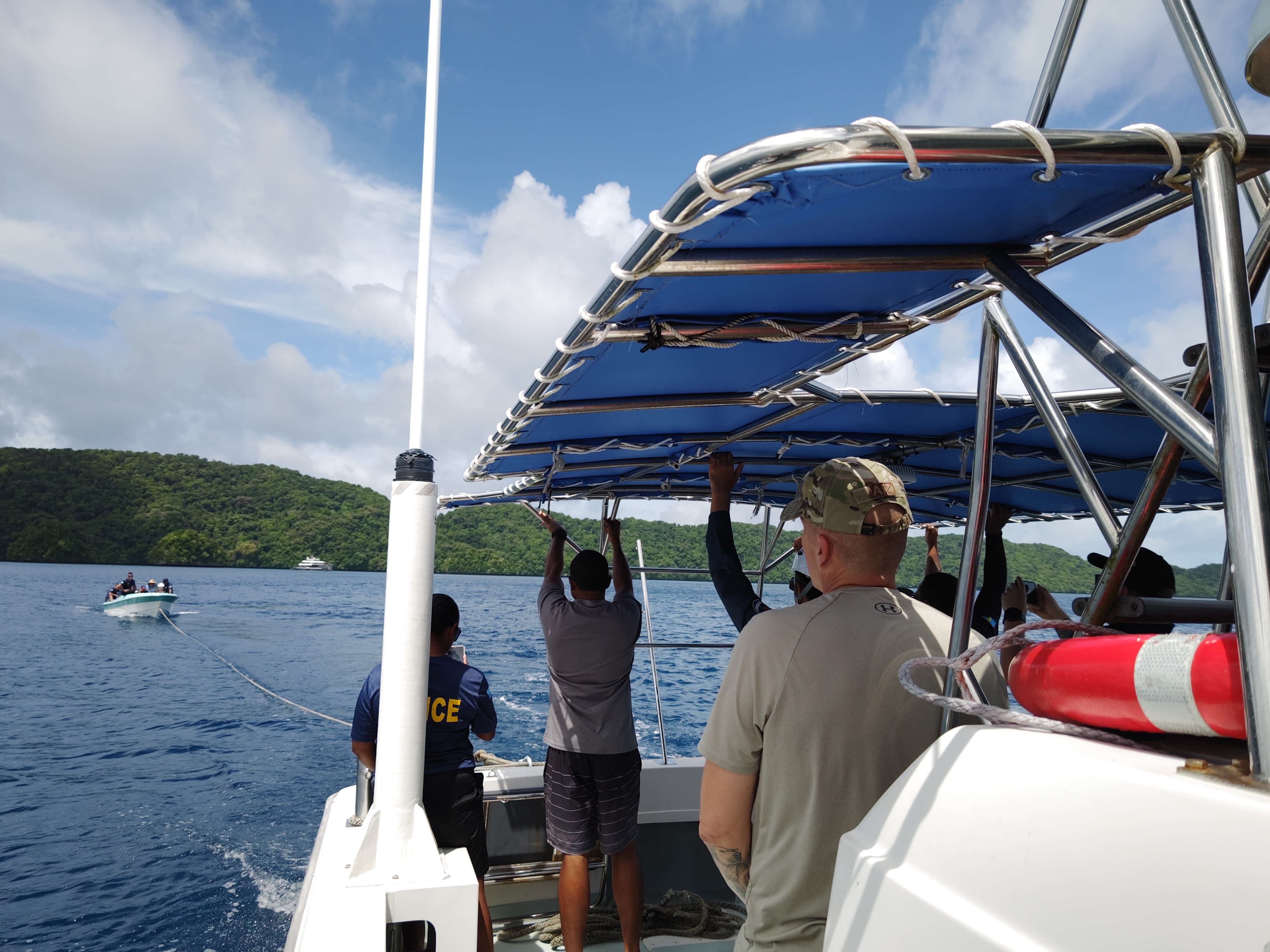 本支援では、パラオ共和国の海上保安機関である「法務省公安局海上警備・魚類野生生物保護部(DMSFWP)」の救助能力向上を目的に、米豪両政府と連携し海面漂流者救助及び小型船の曳航に関する救助訓練を実施しました。