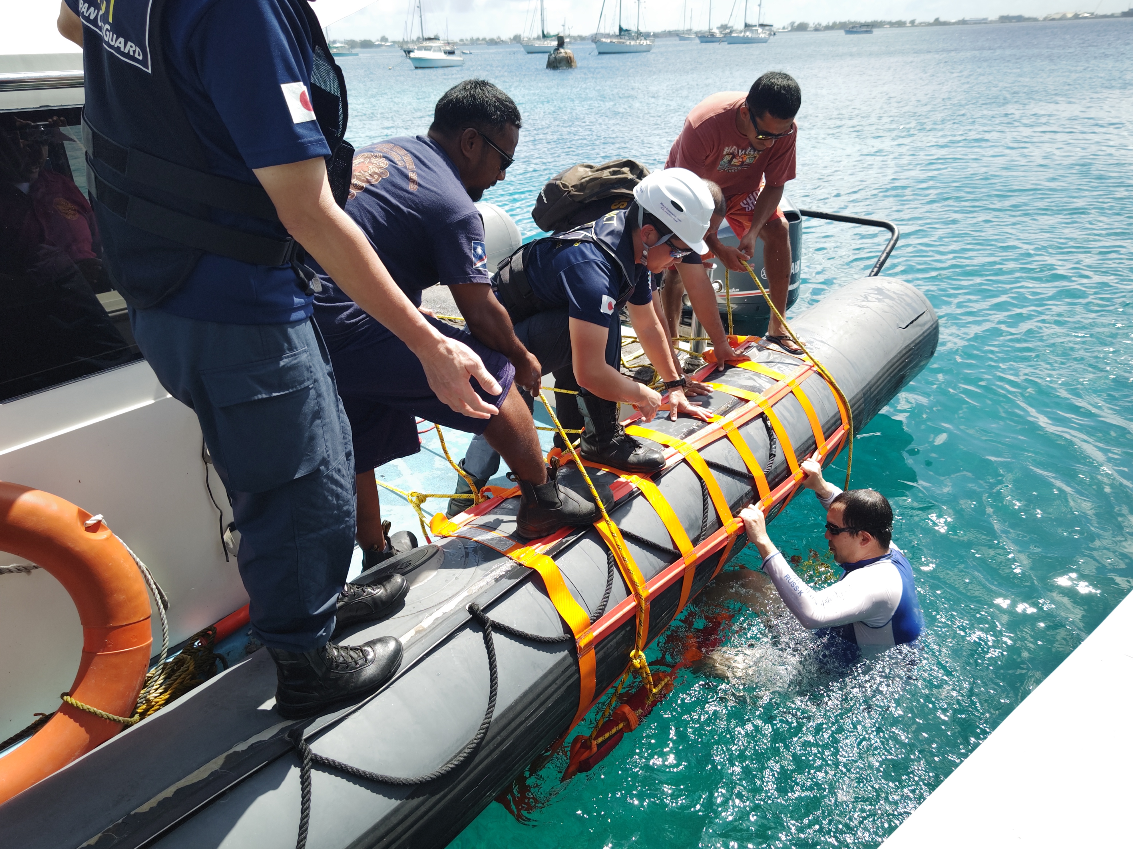 今回の派遣では、ミクロネシア連邦海上保安機関(Maritime Wing)及びマーシャル諸島共和国海上保安機関(Sea Patrol)に対して、「救助資器材を用いた海面漂流者救助訓練」及び「国際法に関する講義」を実施しました。