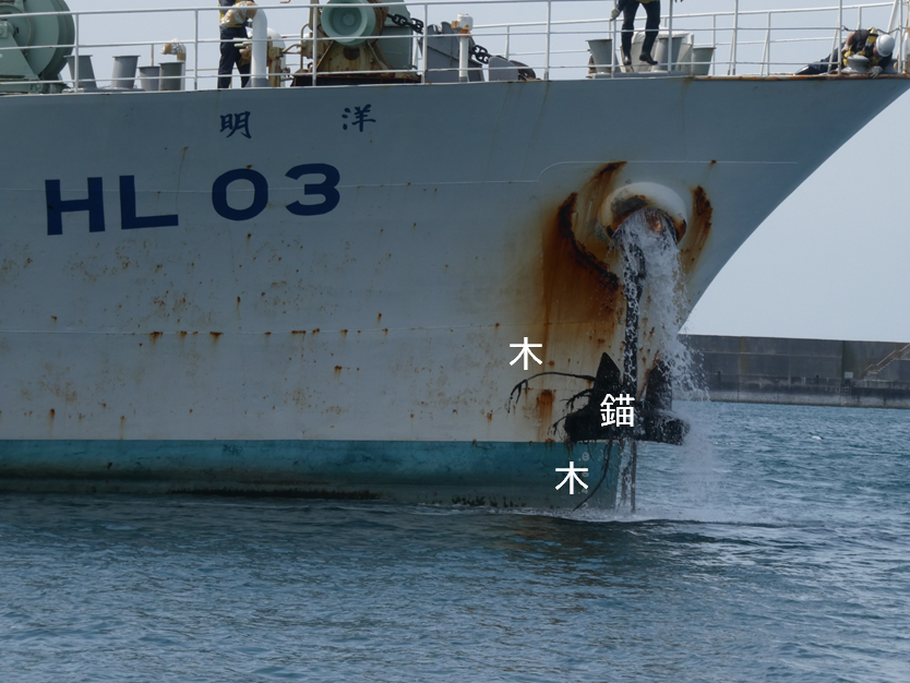 図7 測量船「明洋」が輪島港内で錨を抜いた際に絡まった木