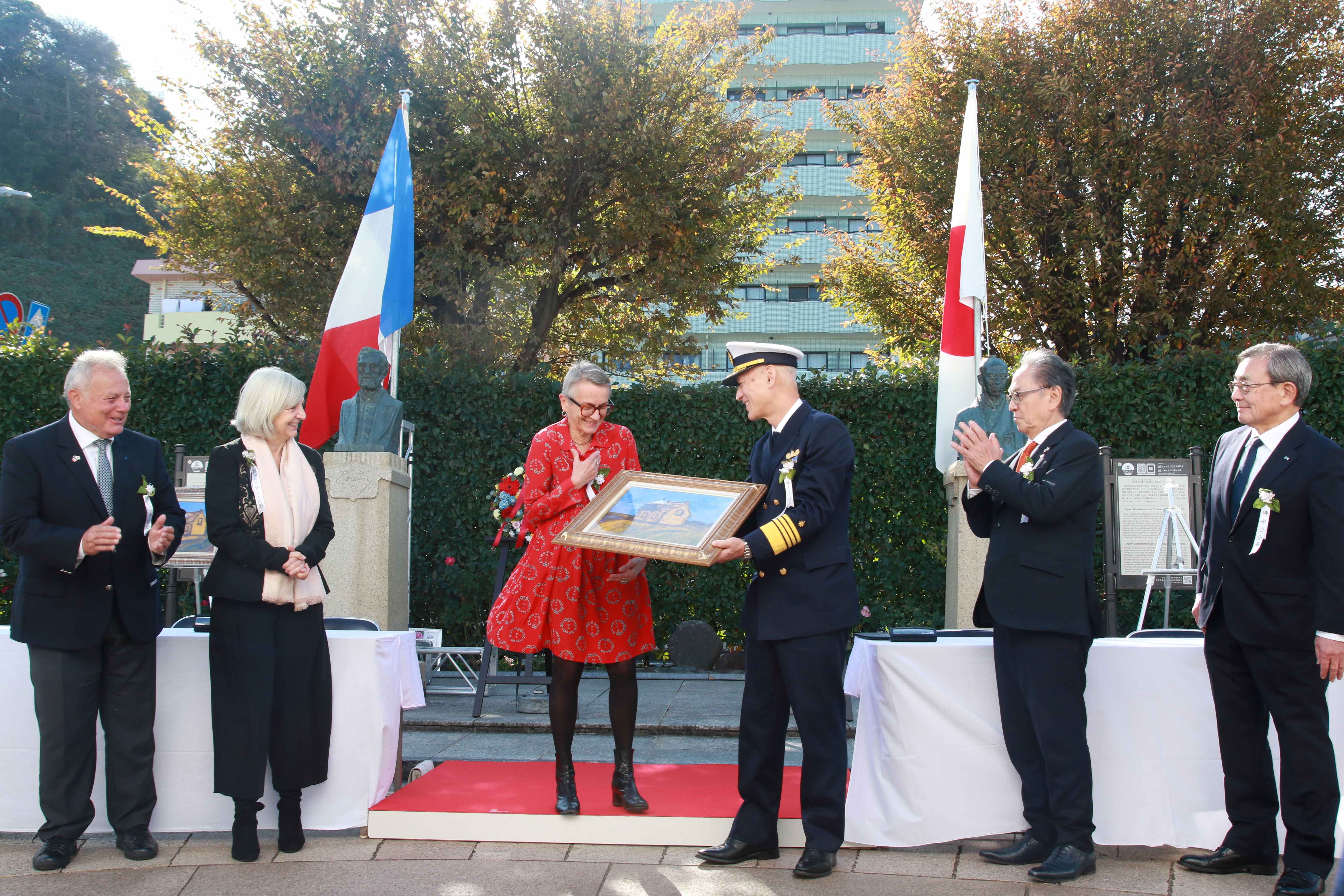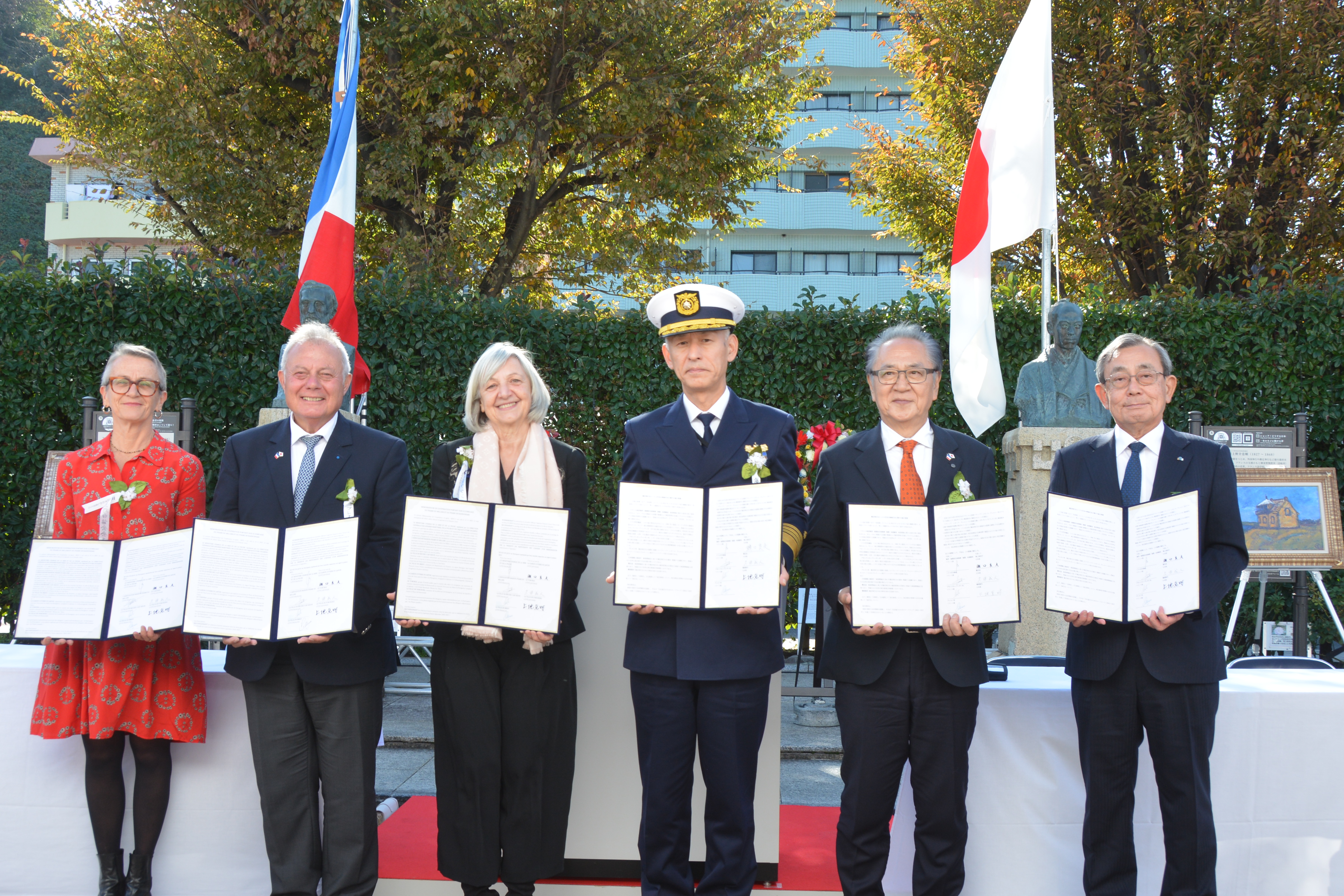 両灯台と関連する地域社会との間の歴史的及び文化的なつながりの促進のために、両灯台の歴史に関する写真やビデオなどの相互展示、人的交流と情報交換を目的とした相手方が管理する灯台の訪問等を実施する内容の覚書に署名しました。また、署名式において武石 尭氏※描画のミリエ灯台油絵をフランス政府へ贈呈しました。
