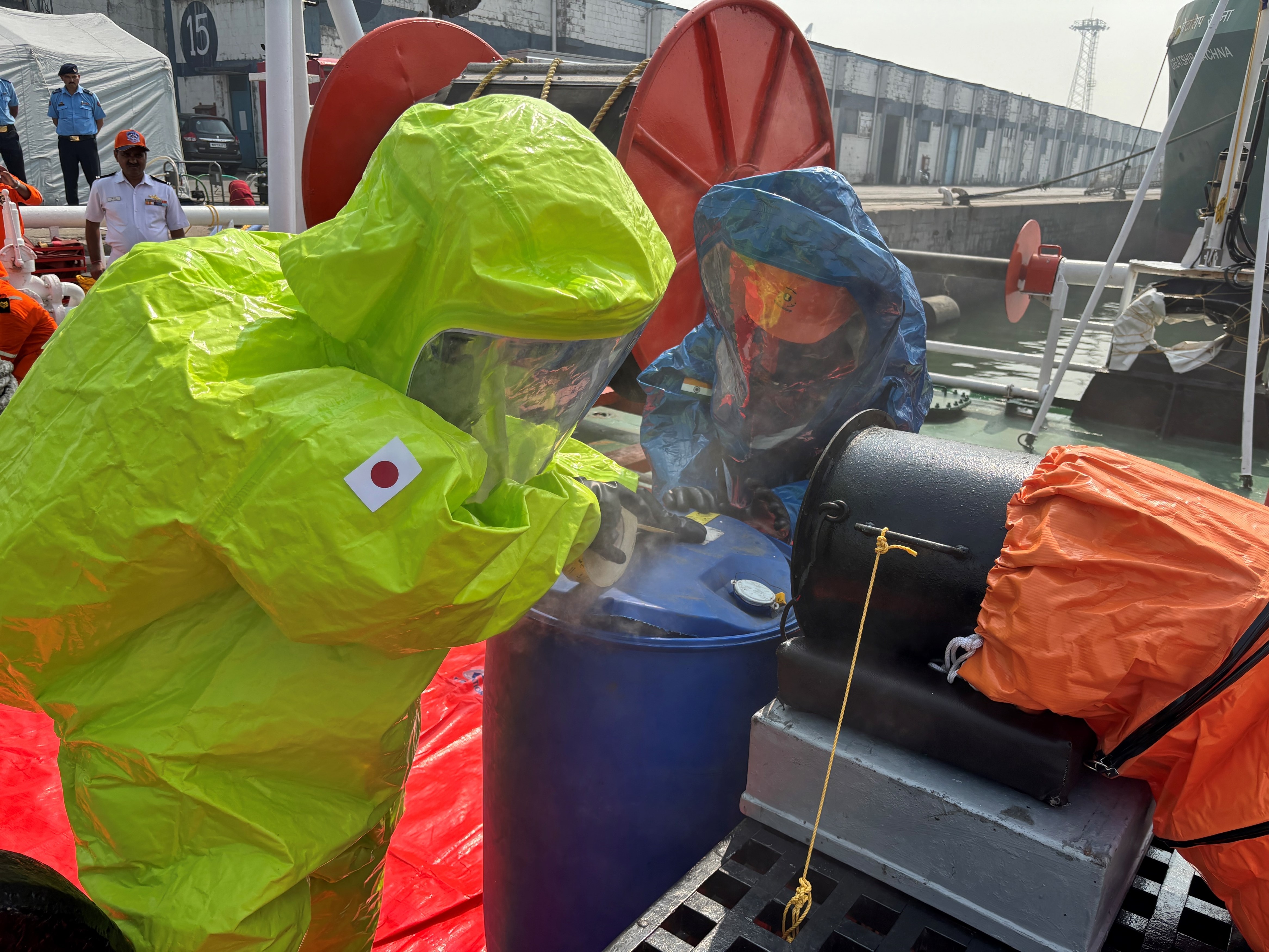 インド沿岸警備隊及び機動防除隊による 危険・有害物質の連携訓練②