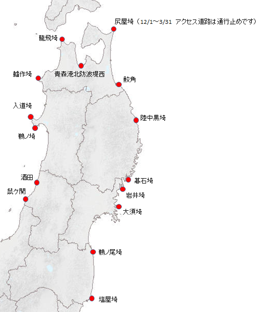 | 青森県 | 艫作埼灯台(へなしさき) | 西津軽郡深浦町大字舮作字下清滝205 | 灯台扉 | 青森海上保安部交通課℡017-734-2422 |