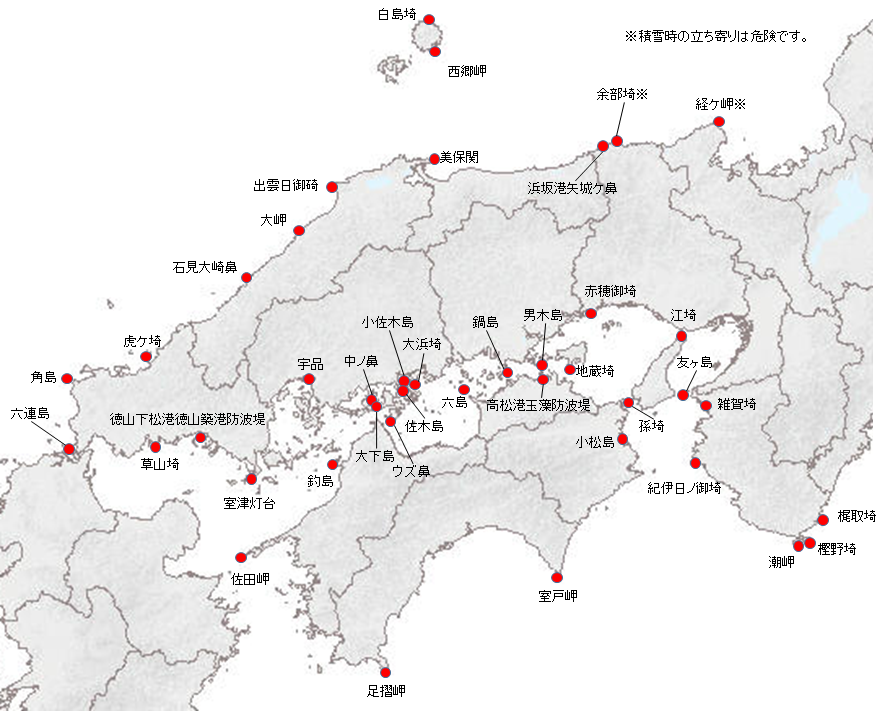 | 島根県 | 美保関灯台(みほのせき) | 松江市美保関町美保関字大平3338 | 灯台扉 | 境海上保安部交通課℡0859-42-2534 |