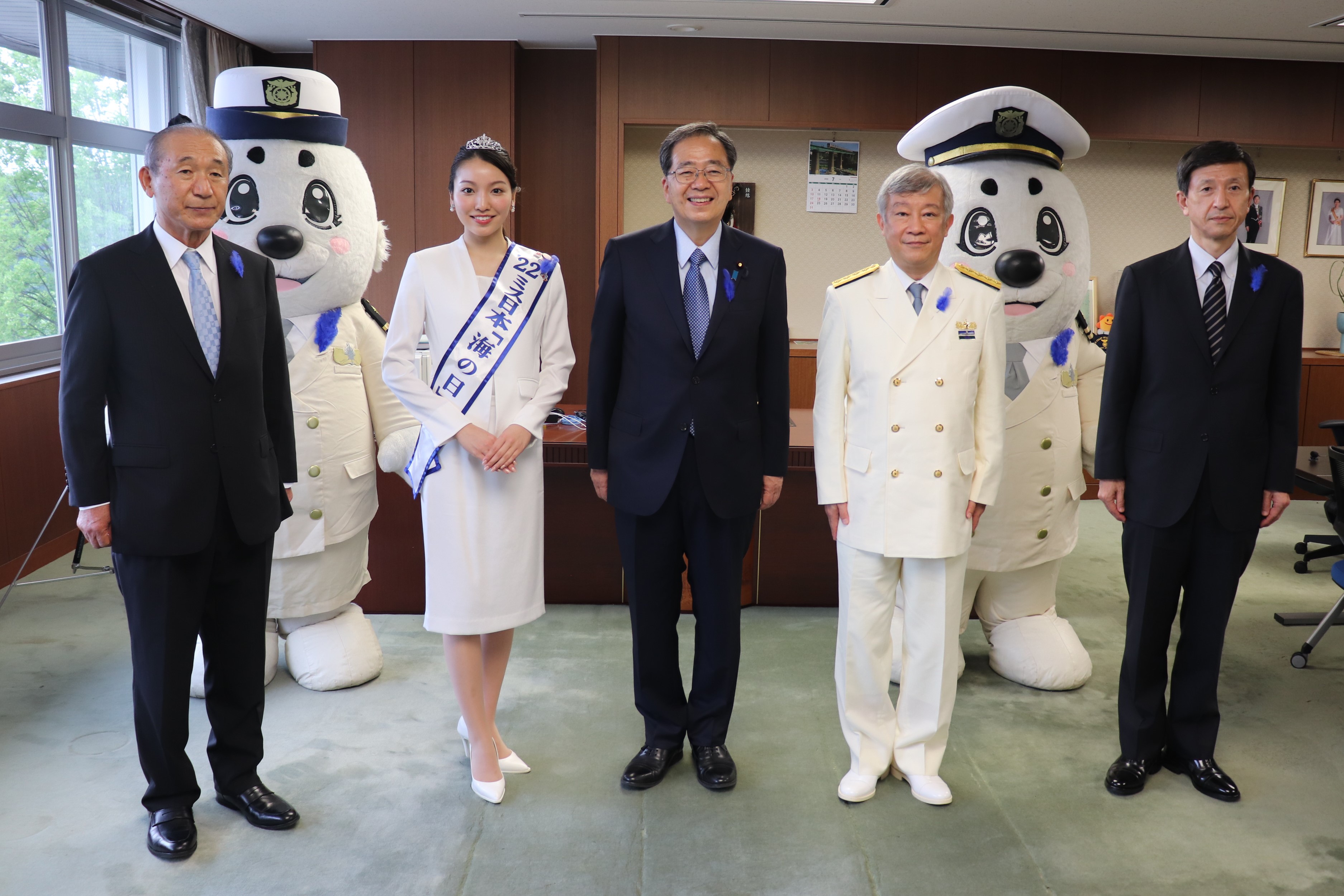 ミス日本「海の日」の表敬訪問を受ける石井長官