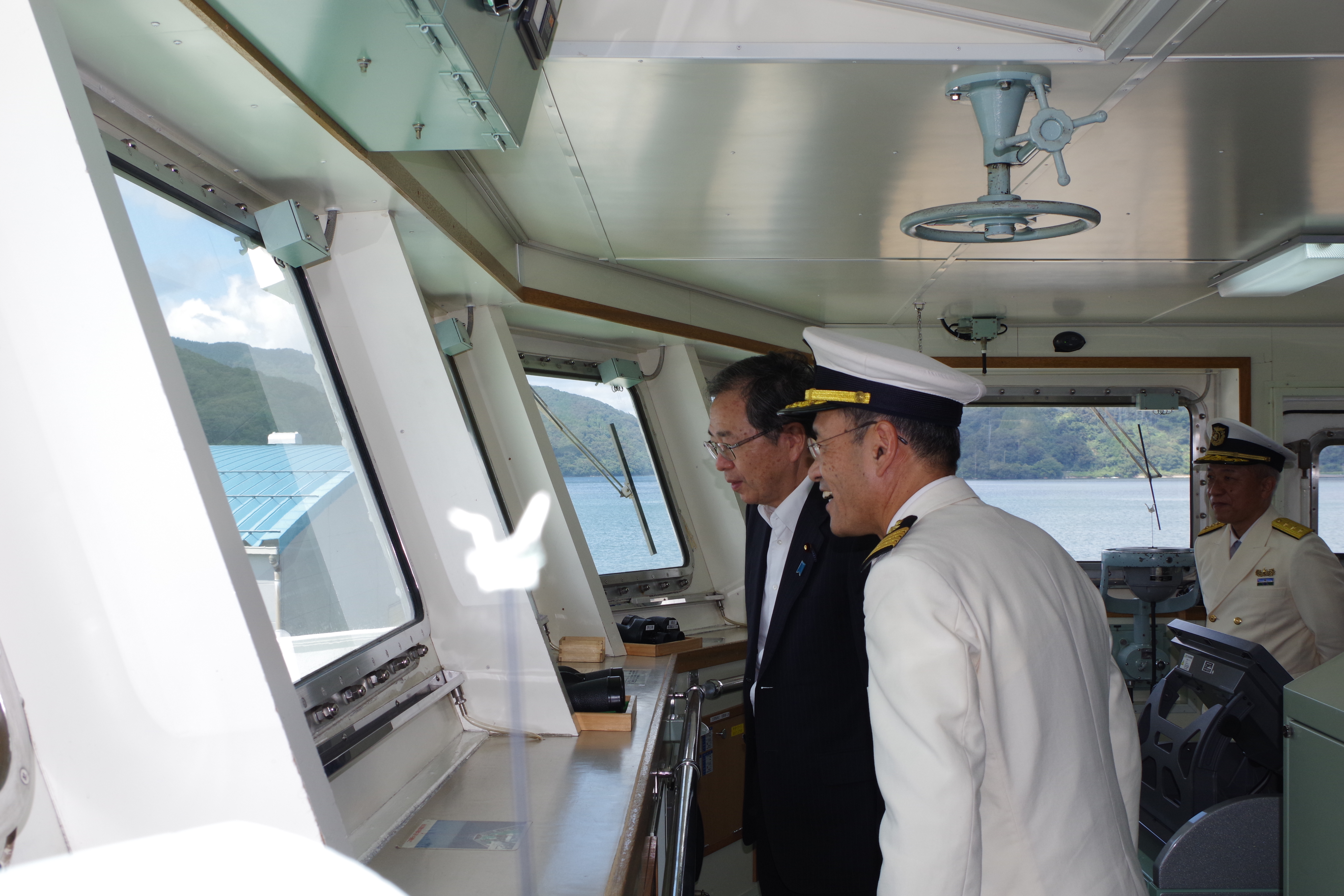 また、式典後には、練習船みうらを視察するとともに、海上保安庁のヘリコプターに搭乗し、2025年日本国際博覧会(大阪・関西万博)会場予定地周辺海域(大阪湾)の上空視察を行いました。
